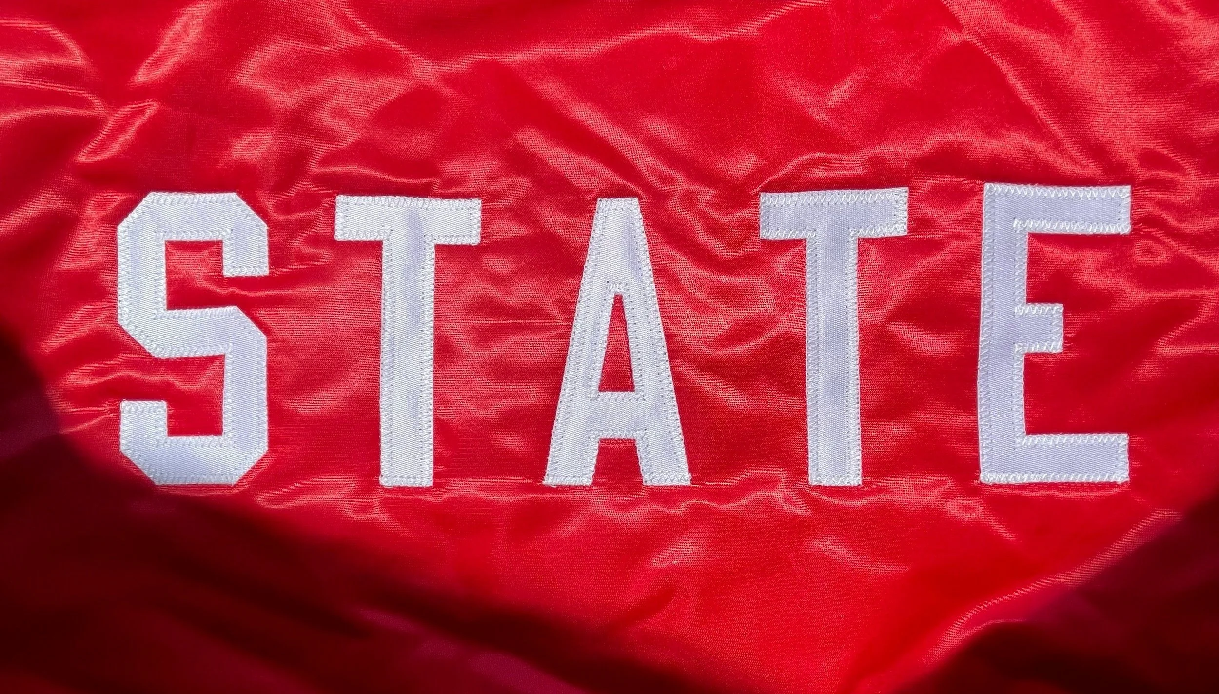An embroidered Brick S patch is the focal point of a custom Starter satin bomber jacket. Brick By Brick sits adjacent on the chest, bringing the point home. The counterspaces in the Brick S represent a cruciform pattern laid in NC State’s Brickyard, one of the campus’ hallowed gathering places.